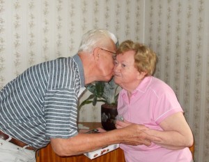 Mint arról a szeptember végi Baráti Kör összejövetelen beszámoltunk, Juhász Gyuláné, Klárika szeptember 23-án ünnepelte 85. születésnapját. Meghívásunknak – egészségi állapota miatt – nem tudott eleget tenni. Tagtársunk, dr. Som Ferenc (egykori sokszoros válogatott kézilabdázó, az FTC volt elnökhelyettese, a labdarúgó szakosztály volt elnöke) vállalta, hogy felkeresi egykori munkatársát és köszönti az FTC Baráti Kör nevében is. Erre a találkozóra a mai napon kerülhetett sor. Dr. Som Ferenc átadta az elbontott Albert Flórián Stadion egy darabkáját tartalmazó emlékdobozt, majd gyönyörű virággal és desszerttel köszöntötte Klárikát.